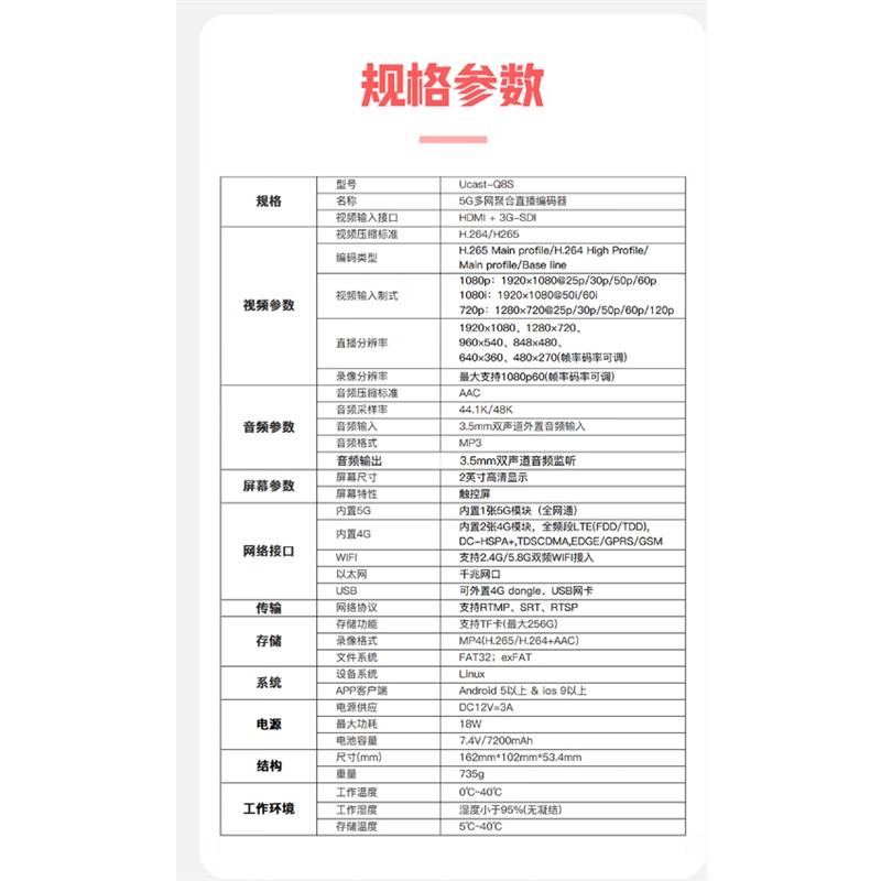ucastq8s 5G多網(wǎng)聚合直播編碼器HDMI SDI高清視頻微贊微信多平臺推流設備 Ucast Q8S